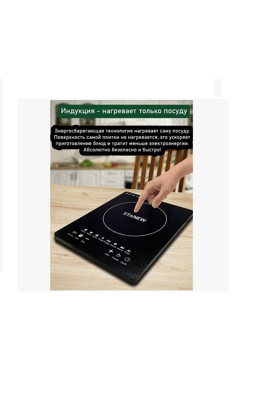 Индукционная настольная плита Tarawa серии Stanew A 19 — одноконфорочная плита с регулируемой мощностью 1600–2200 Вт.