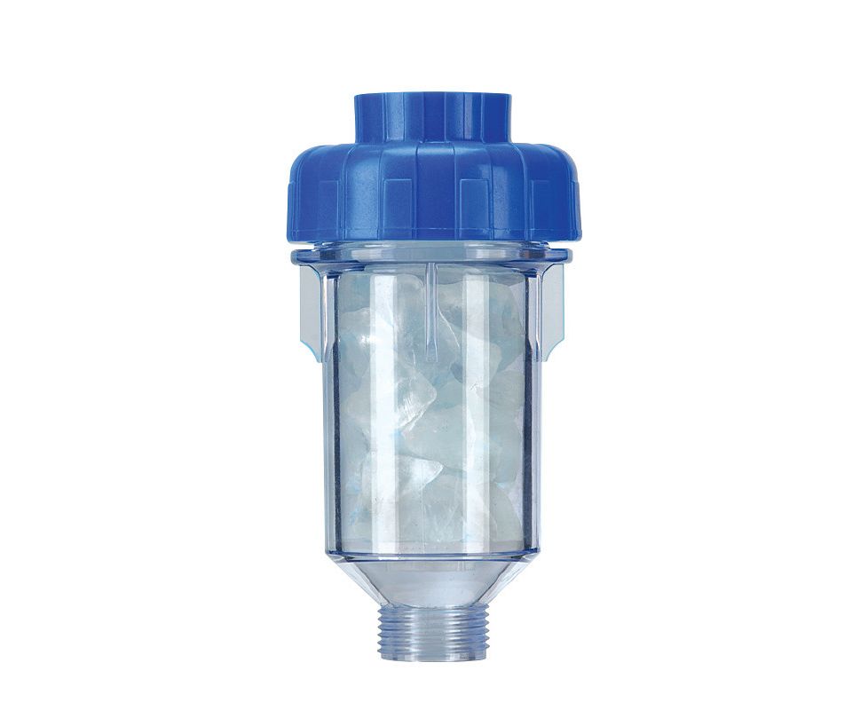 Магистральный фильтр PRIO Новая Вода B130 обеспечивает умягчение холодной воды с частично-растворимым реагентом - полифосфатом натрия (объем фильтра позволяет засыпать 150 г реагента). Фильтр монтируется в магистраль подвода холодной воды к стиральной машине. Прозрачный корпус фильтра заполняется кристаллами полифосфатов.