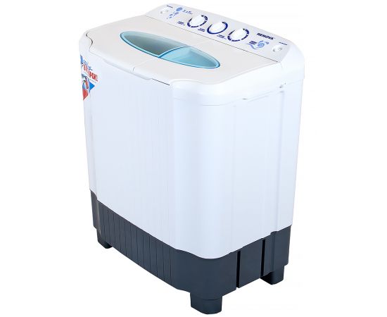 Выполнена Renova WS-50PT/PET в белом корпусе с контрастными голубыми вставками. Объем бара-бана равен 49 л, при этом на один сеанс стирки прибор затрачивает 30 л. Благодаря эксклюзивной форме активатора потоки воды распределяются равномерно, что способствует улучшению качества стирки. Очень удобно наличие таймера стирки и таймера отжима, что позволяет отслеживать процесс стирки. Вертикальный способ загрузки делает возможность дозагрузки белья. Об окончании стирки всегда оповестит звуковой сигнал.