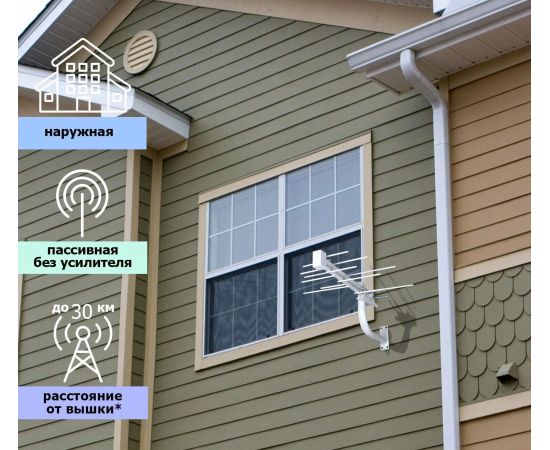 Антенна индивидуальная уличной установки, предназначена для приема цифрового эфирного ТВ вещания в стандарте DVB-T2.