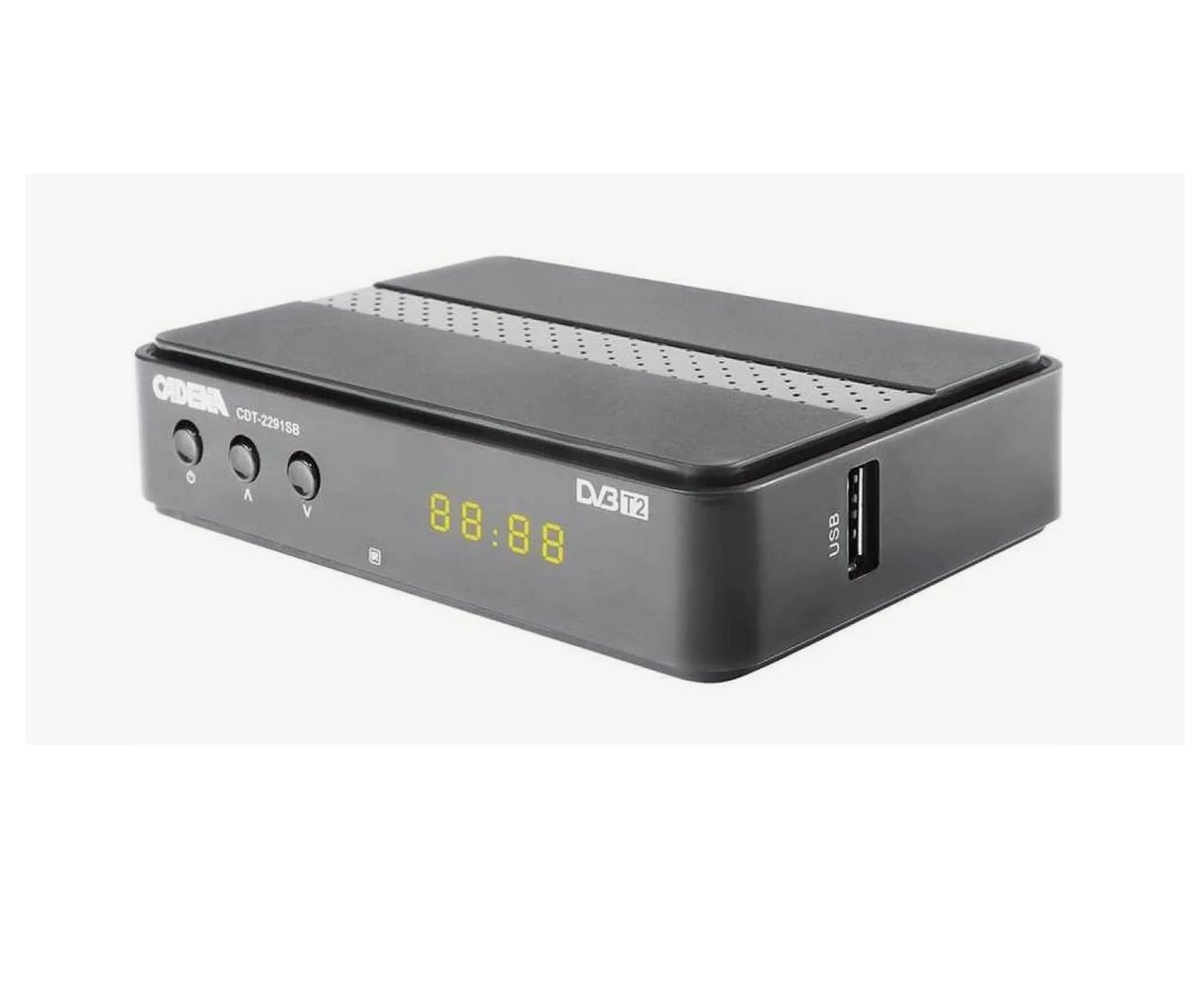 Цифровой ресивер CADENA CDT-2291SB предназначен для просмотра бесплатного цифрового эфирного телевидения высокого качества. Устройство имеет встроенный тюнер DVB-T2 и корпус из пластика. Для приёма цифрового эфирного телевидения к приставке необходима антенна дециметрового диапазона. Антенна подключается к приставке, а приставка — к телевизору.