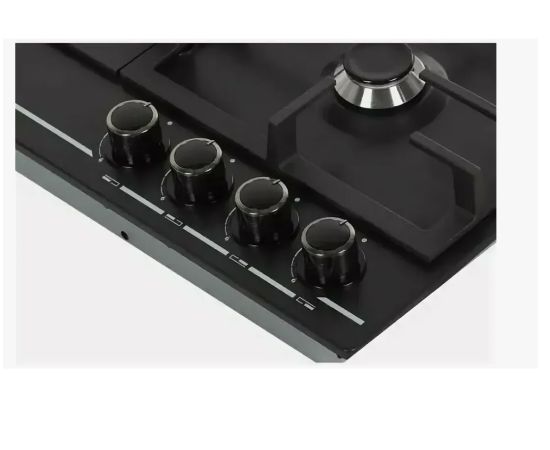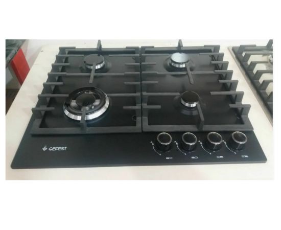 Газовая варочная панель GEFEST ПВГ 1214-01 К2 имеет 4 конфорки, чугунные решётки и чёрный цвет.