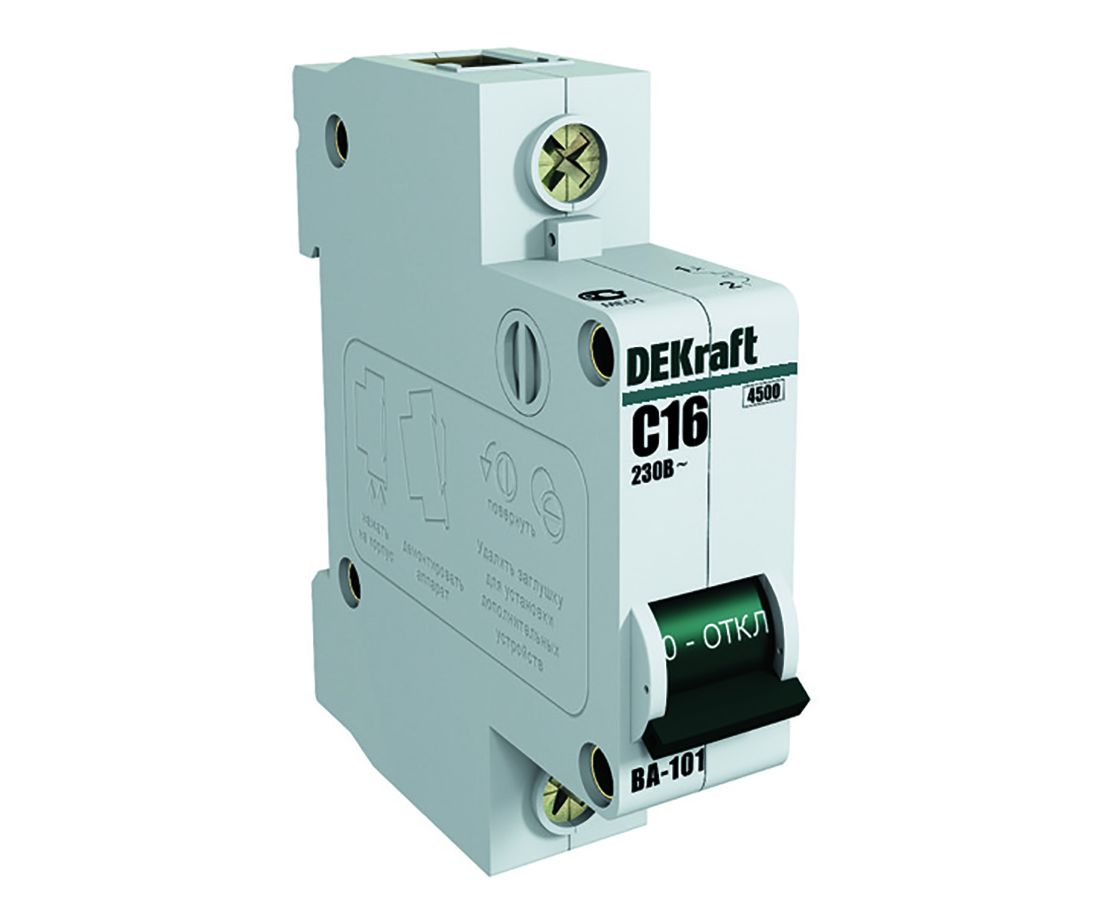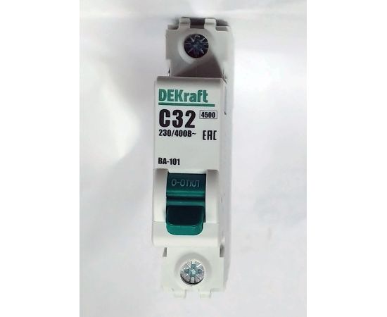 Автоматический выключатель серии ВА-101 DEKraft, 1P, номинальный ток 32 А, характеристика С, отключающая способность 4,5 кА. Новый механизм расцепления мгновенно разрывает цепь при возникновении аварии. 5 монолитных заклепок повышают прочность корпуса аппарата. Сплошная лицевая панель обеспечивает безопасность эксплуатации аппарата. Боковые каналы охлаждения повышают стабильность работы при высоких температурах окружающей среды. Полностью автоматизированный контроль качества производства.