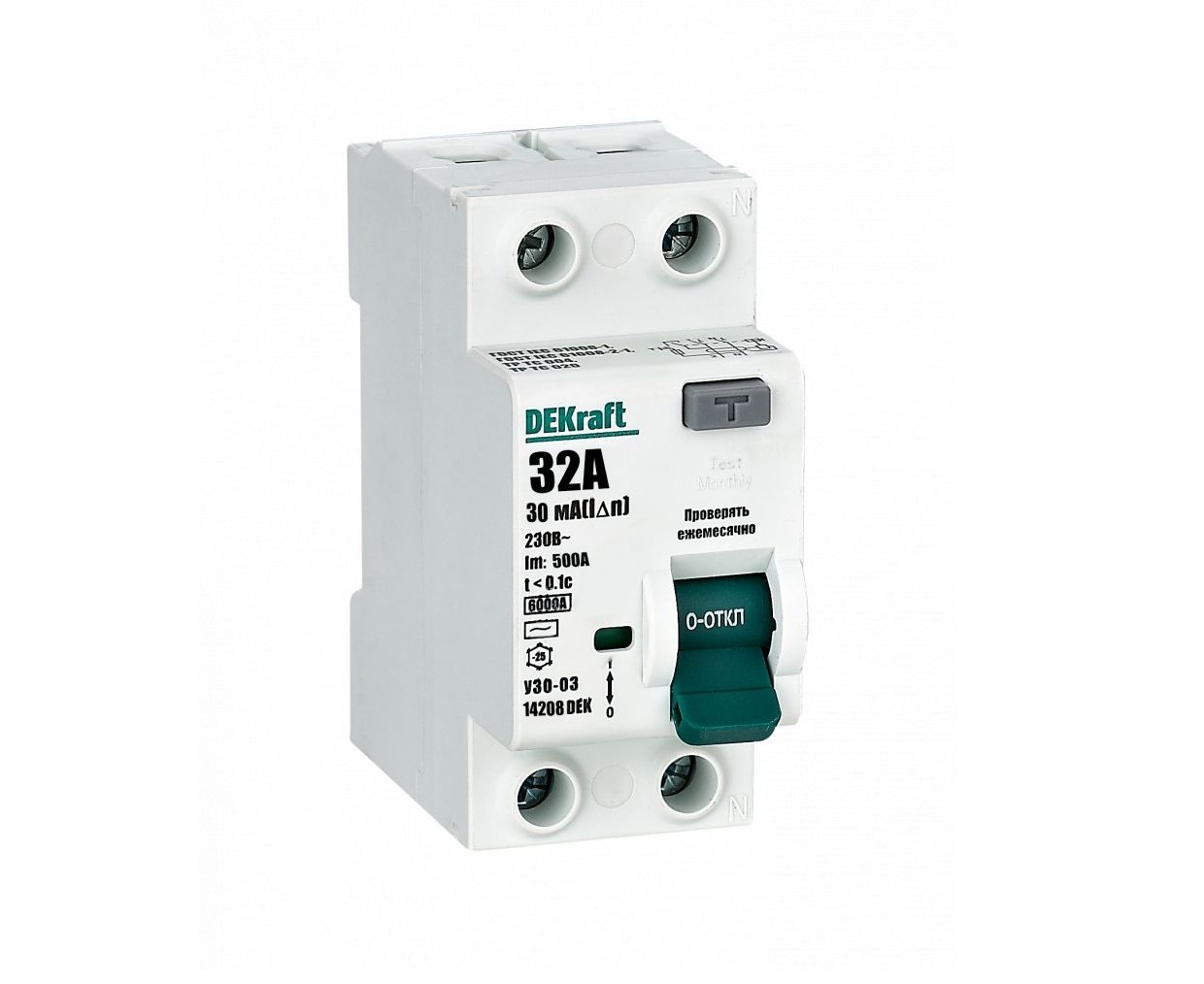 Выключатель дифференциального тока DEKraft 2п 32А 30мА AC УЗО-03 6кА 14208DEK применяется совместно с предохранителем. Автоматический выключатель и УЗО устанавливаются последовательно, при этом номинальный ток УЗО должен быть на одну ступень выше. Аппарат обеспечивает надежную защиту человека от поражения электрическим током при случайном контакте с токопроводящими частями. Также изделие защищает различные электроустановки от утечки тока и риска возникновения пожаров.