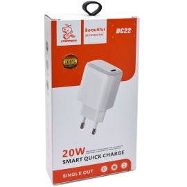 Зарядное устройство сетевое USB-C Denmen DC22 USB, Type-C, QC 3.0, 20W 3,0A белый