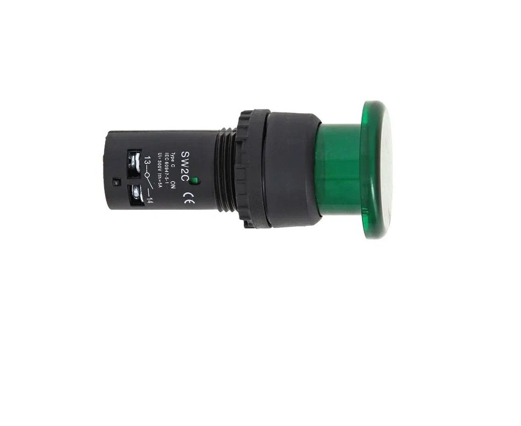 Кнопка SW2C-MD «Грибок» зелёного цвета EKF (артикул sw2c-md-gg) предназначена для оперативного управления технологическим оборудованием и индикации состояния электрических цепей. Кнопка работает в электрических цепях переменного тока частотой 50/60 Гц с напряжением до 660 В и постоянным напряжением до 400 В.