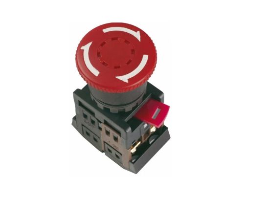 Кнопка AE-22 «Грибок» с фиксацией без подсветки (артикул производителя — BBG10-AE-K04) от бренда IEK — красная грибовидная кнопка управления.