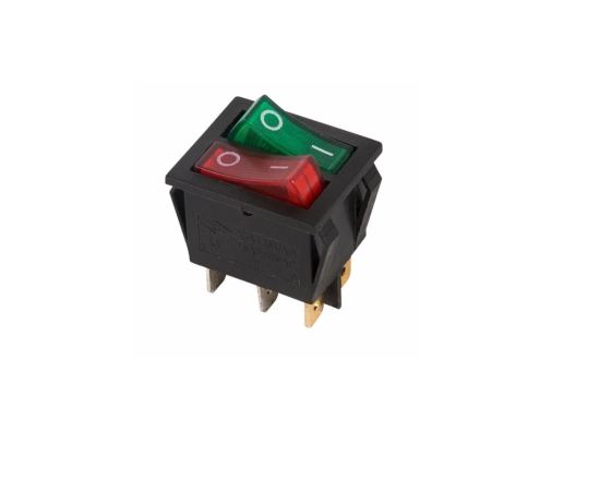 Выключатель клавишный 250V 15А (6с) ON-OFF красный/зелёный с двойной подсветкой (RWB-511) Rexant 36-2450 предназначен для коммутации электрических цепей переменного тока напряжением до 250В.