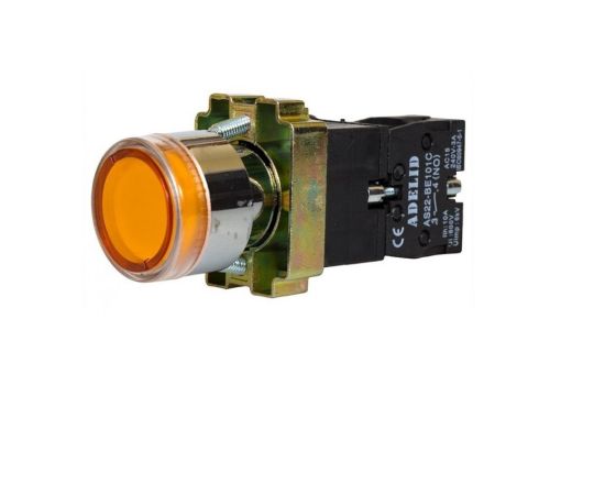 Кнопка XB2-BW3561 жёлтого цвета предназначена для оперативного управления технологическим оборудованием в электрических цепях переменного тока частотой 50/60 Гц с напряжением до 380 В или постоянного тока напряжением до 220 В.