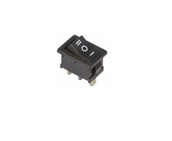 Выключатель клавишный 250V 6А (3с) ON-OFF-ON черный с нейтралью Mini предназначен для коммутации электрических цепей переменного тока напряжением до 250В. Клавишные (Рокерные) выключатели применяются в качестве комплектующих изделий различного электрооборудования (в сетевых фильтрах и удлинителях, аудио-оборудовании, блоках питания, электроустановках на различных производствах, автомобилях, и многих других местах). Такой клавишный переключатель имеет три положения. Принцип действия основан на перемещении клавиши в одну из позиций. Для переключения в нужное положение требуется приложить некоторые усилия на клавишу. Монтаж осуществляется без применения винтов на плоских панелях толщиной от 0.8мм до 3мм. Подключение контактов осуществляется плоской клеммой, либо с помощью пайки.