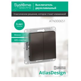 Выключатель ATLASDESINGH мокко 2-клав. ATN000651