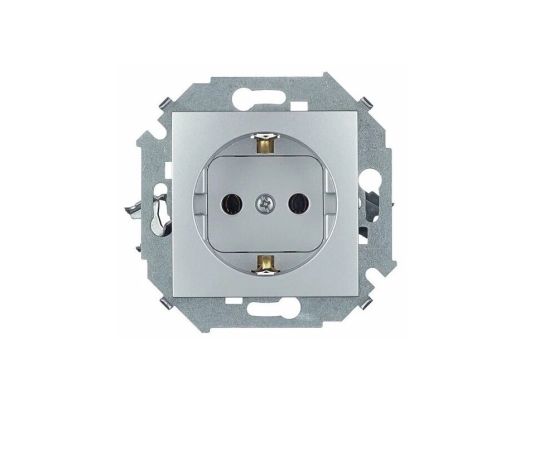 Розетка Simon 15 (артикул 1591432-033) — дизайнерская модель с заземлением, цвет — алюминий. Подходит для различных современных интерьеров: классика, лофт, модерн, минимализм, винтаж и другие.