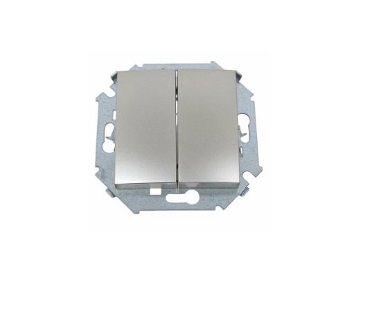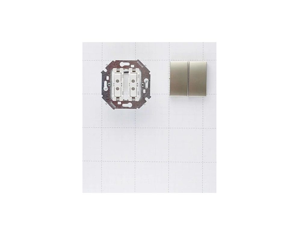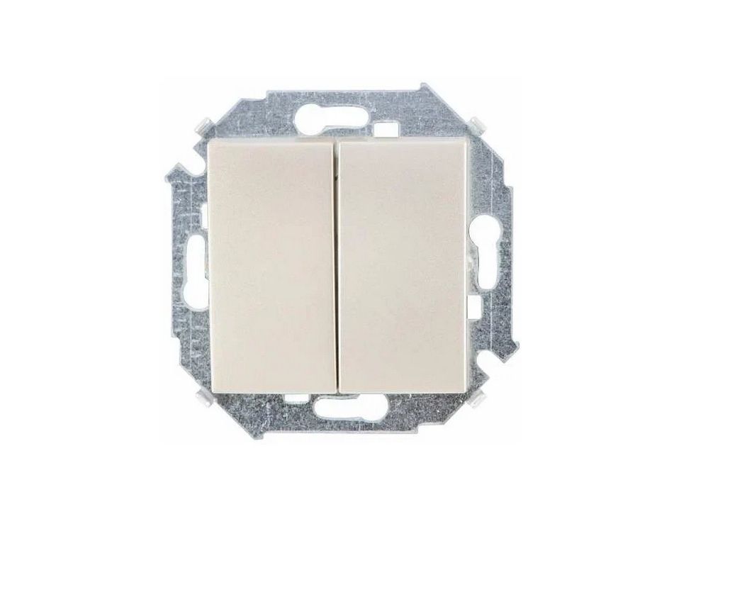 Двухклавишный выключатель Simon 15 (артикул 1591398-034) цвета «шампань» — устройство для управления двумя независимыми группами осветительных приборов.