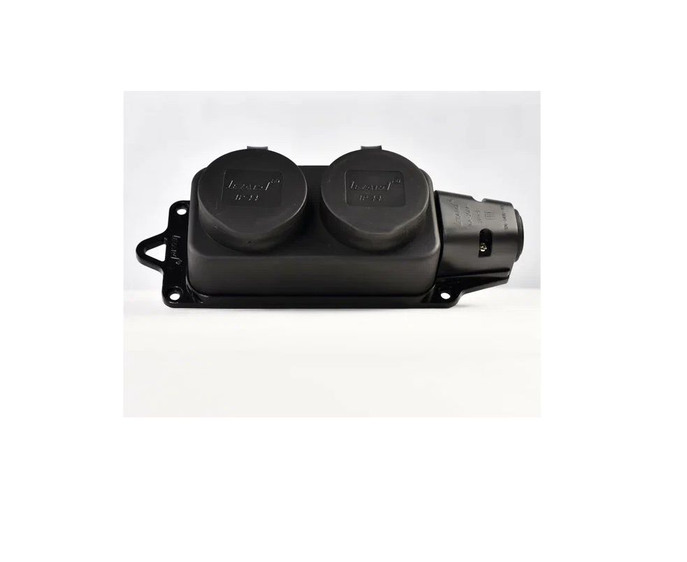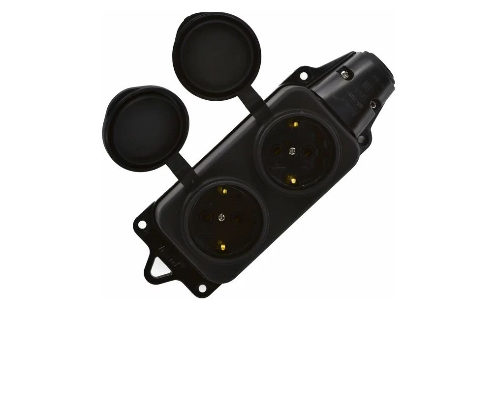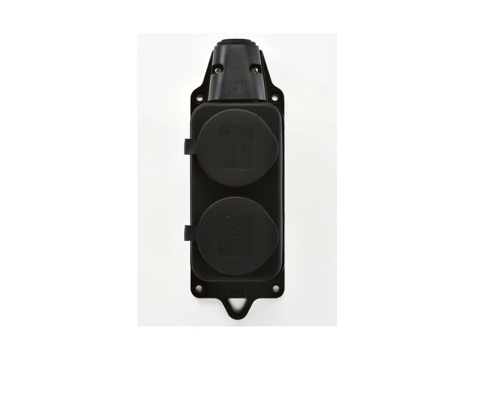 Колодка 2-м 16А IP44 2P+PE 220–240В с защитными крышками из каучука LEZARD 106-0400-0110/110 предназначена для подключения электроприборов в промышленных и бытовых условиях.
