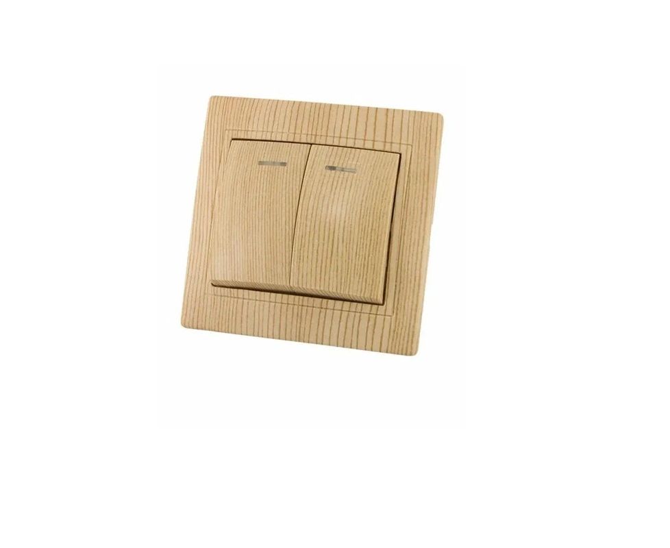 Выключатель TDM «Таймыр» двухклавишный с подсветкой в сборе «сосна» SQ1814-0205 предназначен для включения и выключения светильников, люстр и других источников света.