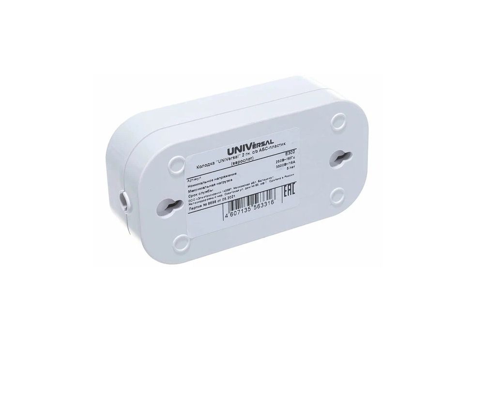 Колодка с двумя гнездами и заземлением UNIVersal E302 (код товара: 9068984) — электроустановочное изделие из ABS-пластика.