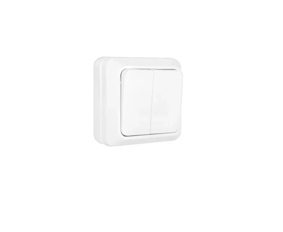 Выключатель двухклавишный «Олимп» О0023 от бренда UNIVersal предназначен для открытого монтажа и эксплуатации в бытовых помещениях.