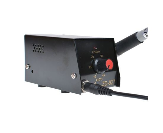 Паяльная станция (мини) ZD-927 REXANT предназначена для ручного монтажа радиоэлементов. Имеет сверхкомпактный дизайн. Её можно использовать как в домашних условиях, так и в профессиональных лабораториях. Температурный диапазон нагрева 100°- 45°С, регулируется с помощью механического потенциометра. Станция комплектуется миниатюрным низковольтным (12В) паяльником с возможность замены жала.