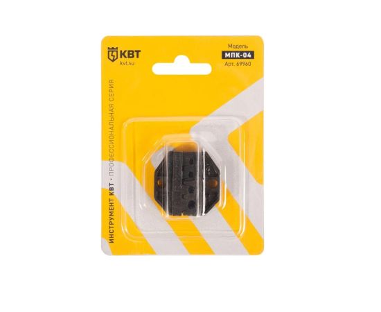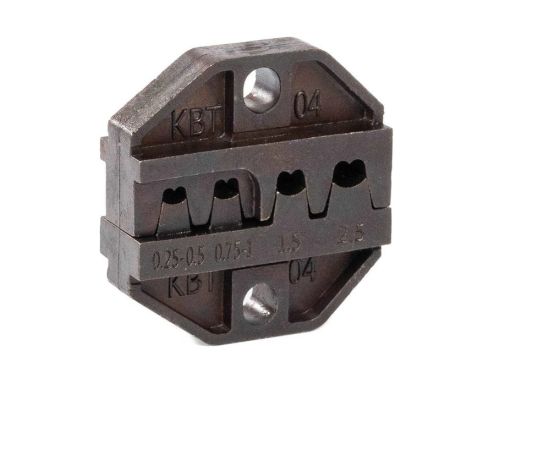 Матрица МПК-04 КВТ 69960 используется совместно с пресс-клещами СТВ-04, СТА-04, СТК-04, набором СТВ. Применяется для опрессовки неизолированных разъемов и наконечников (автоклемм) под двойной обжим. Типы наконечников: РП-М, РП-П. Сечения проводов: 0.25/0.34/0.5/0.75/1.0/1.5/2.5 мм². Тип матрицы — четырехпозиционная. Профиль обжима — лепестковый, двухконтурный.