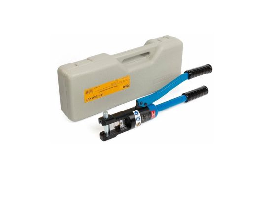 Гидравлический ручной пресс ПГР-300 КВТ (артикул 49628) предназначен для опрессовки гильз и силовых наконечников. В комплектацию входят ручной гидравлический пресс ПГР-300, набор из 12 сменных матриц, ремкомплект (уплотнительные кольца), прочный пластиковый кейс.