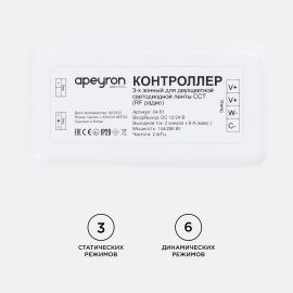 Контроллер д/светодиод.ленты APEYRON CCT 12/24V144/288w 2канала 6A IP20 без пульта 04-51