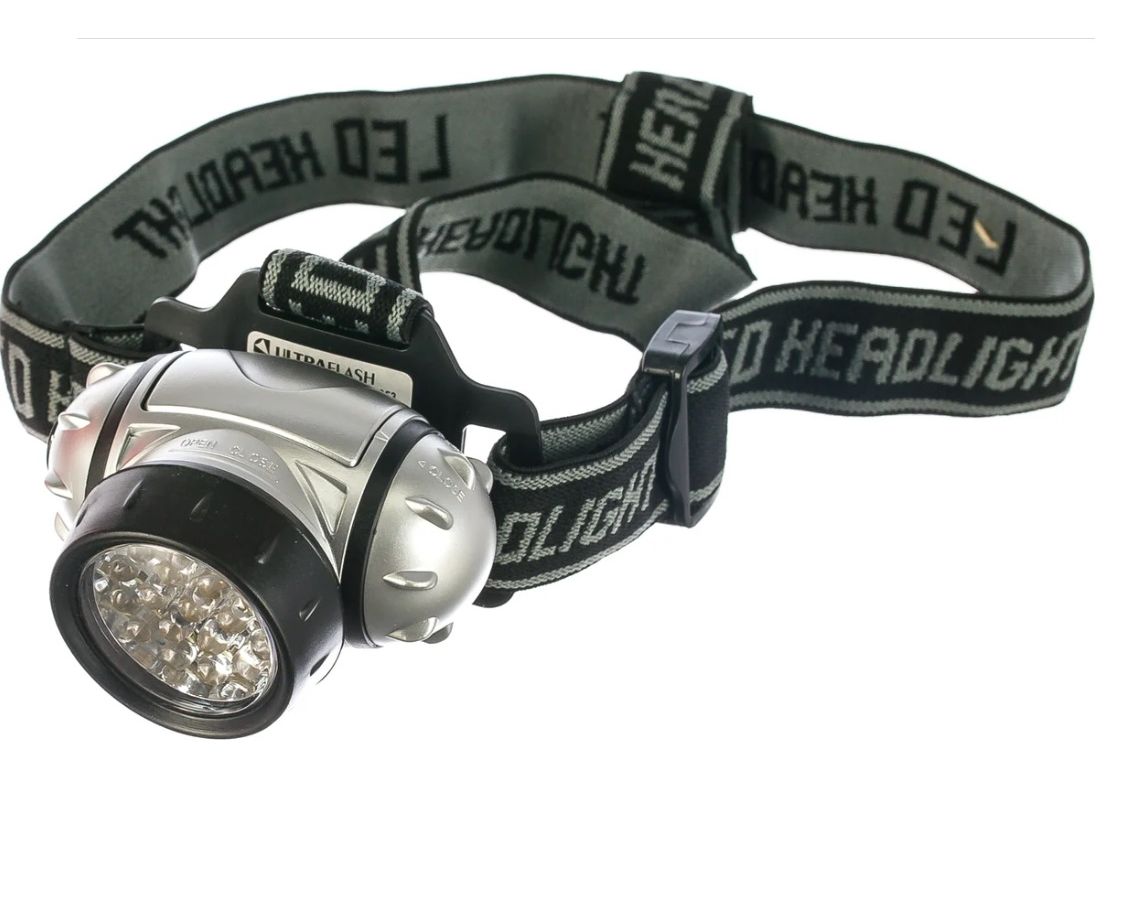 Фонарь налобный Ultraflash LED 5353 19LED 4 режима 3хR03 металлик (артикул 10262) — электрический светодиодный фонарь.