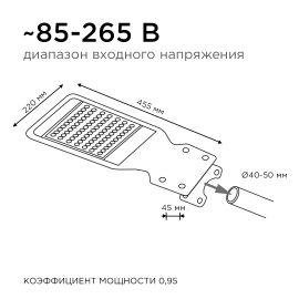 Светильник светод.уличн. APEYRON 120W(9600lm) 5000K 6K IP65 455x220x45 d=40 черн. 29-09