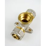 Кран шаровый д/металлопласт. тройник 16х1/2х16 цанга/внутр/цанга