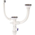 Сифон Элит для 2-й мойки с нерж. чашкой d114 с отводом и круг.перелив