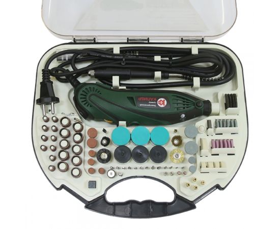 Ручной электрический гравёр Калибр ЭГ-145+ВГ представляет собой высококачественный точный инструмент, который при использовании широкого ассортимента насадок может выполнять различные работы на небольших изделиях (заготовках): шлифование, гравировку, фрезерование, отрезание, чистку и полировку. Гибкий вал, входящий в комплект поставки, ещё больше расширяет границы применения инструмента и позволяет проводить работу с заготовками, расположенными в труднодоступных местах.