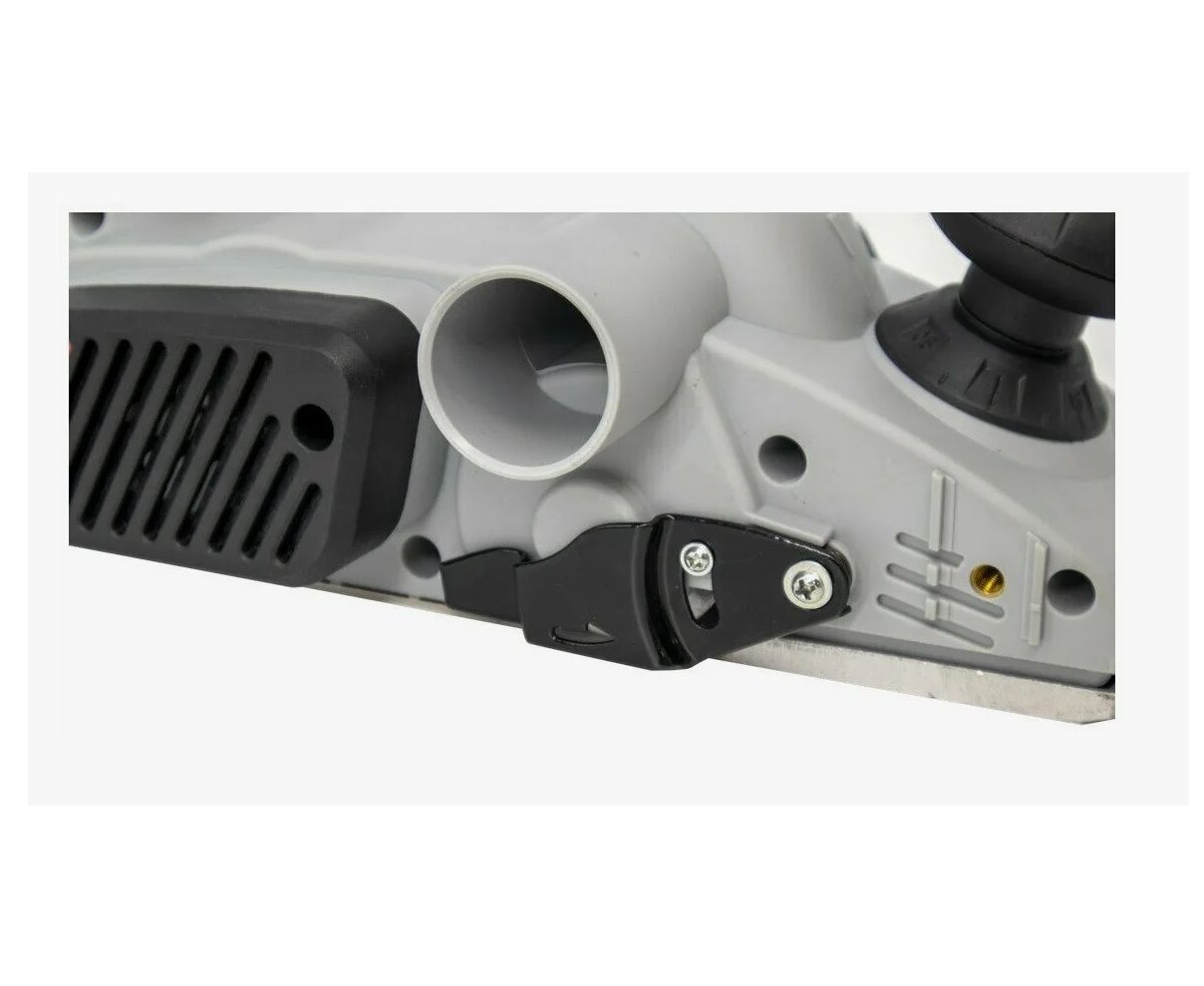 Комплектация: электрический рубанок, боковой ограничитель (упор) с ключом, ограничитель глубины строгания, ключ для замены лезвий, паспорт, упаковка, инструкция по эксплуатации, пылесборный мешок.