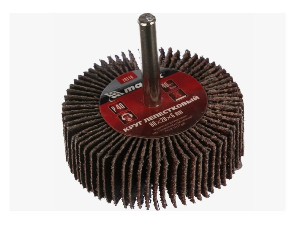 Лепестковый круг для дрели Matrix 74110 с зернистостью P 40 — оснастка для дрелей и прямых шлифовальных машинок с посадочным гнездом 6 мм, рассчитанных на скорость до 8000 об/мин.