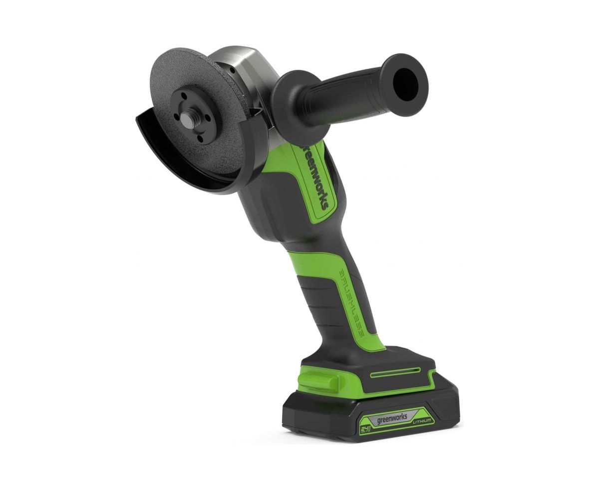 ккумуляторная угловая шлифовальная машина GreenWorks GD24AG 3200207 имеет бесщеточный двигатель, который обеспечивает скорость вращения до 10 500 оборотов в минуту.