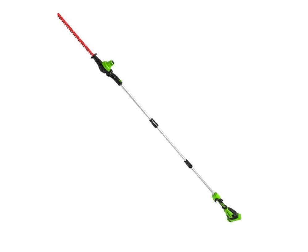 Высоторез-Кусторез аккумуляторный Greenworks Арт. 1303907, 2 в 1, 40V, без АКБ и ЗУ. Отличный инструмент для ухода за вашим садом. Имеет две сменные насадки, которые крепятся к штанге устройства. Высоторез с легкостью справится с обрезкой ветвей и сучьев на высоте до 3,5-х метров, благодаря 3-х секционной штанге длиной 1,7 м. Пильная шина имеет длину 25 см. Кусторез предназначен для ухода за живыми изгородями. Длина лезвия составляет 51 см. Уход за высокими деревьями и кустами станет легче и безопасней! Садовая лестница теперь не нужна. Согласитесь, стоять на земле гораздо комфортнее, чем на неустойчивой лестнице с работающим инструментом в руках. Работа от Li-ion аккумулятора 40V совместимого с 50+ моделями инновационного садового инструмента из линейки Greenworks 40V. На инструмент предоставляется расширенная гарантия 3 года. Этот комплект поставляется без аккумулятора (АКБ) и зарядного устройства (ЗУ).