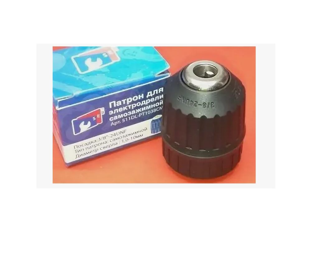 Патрон для электродрели 10 мм, посадка 3/8 - 20 UNF. Изделие предназначено для замены вышедшего из строя старого патрона. Используется для зажима оснащения на шуруповертах, дрелях. Корпус патрона изготовлен из углеродистой стали и покрыт пластмассой с рифленым нанесением, что препятствует скольжению. Губки патрона вылиты из закаленного металла, поэтому прочно фиксируют сверла и другое оснащение.