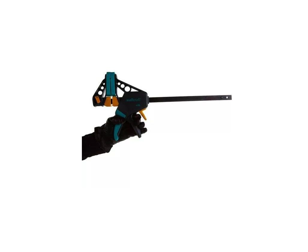 Мощность для профессиональной работы. Быстро, надежно, и комфортабельно зажимать - одной рукой. Высококачественная рейка, обеспечивающая большую, неослабевающую силу зажима. Очень легкое расслабление зажима, благодаря оптимальному эффекту рычага. Прочное и мощное - сила зажима до 120 кг, легкость в обращении и надежно удерживаемая, благодаря эргономичной ручке и области с защитой от соскальзывания, для профессионалов: имеется функция распора. Передвигаемые прокладочные элементы защищают деталь и служат в качестве подставки, крестовой паз для надежного зажима круглых объектов,