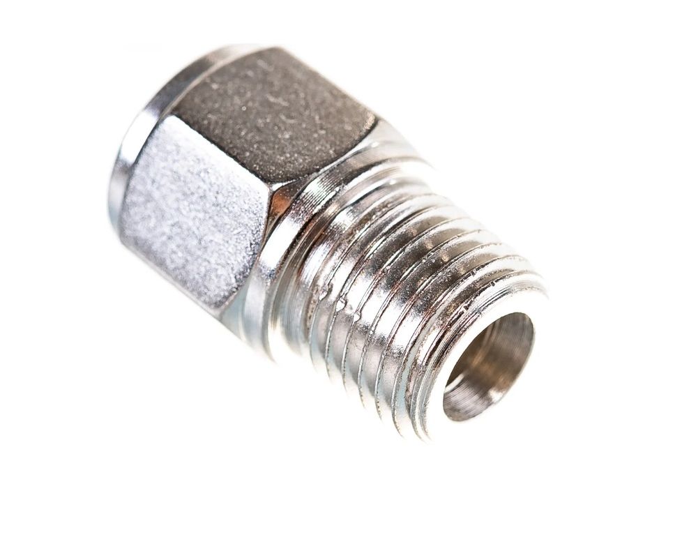Переходник 1/4"M — 1/4"F 180186 предназначен для работы с компрессорным оборудованием. Обеспечивает переход с резьбы — 1/4"M (внешняя) на резьбу — 1/4"F (внутренняя).
