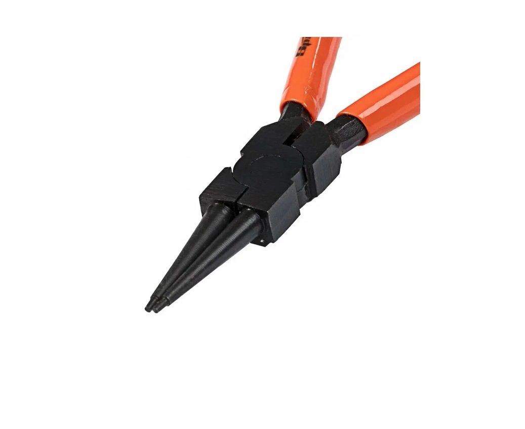 Прямой съёмник Sparta 183355 длиной 150 мм работает на сжим и предназначен для установки и снятия внутренних стопорных колец с проушинами.