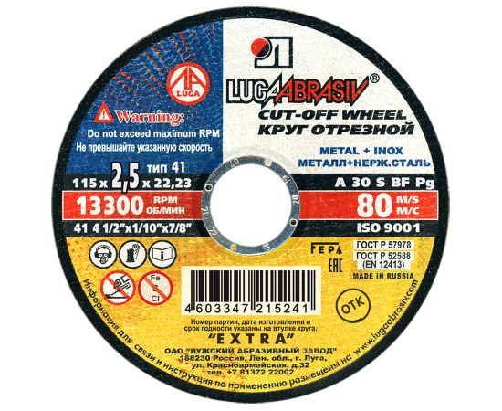 Круг отрезной по металлу (115 х 2,5 х 22,23 мм) LugaAbrasiv (г. Луга)