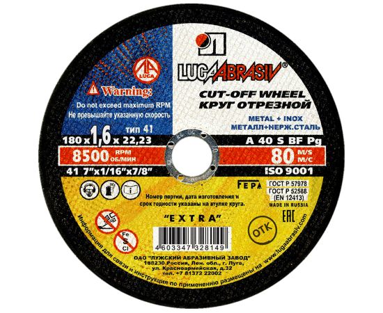 Круг отрезной по металлу (180 х 1,6 х 22,23 мм) LugaAbrasiv (г. Луга)