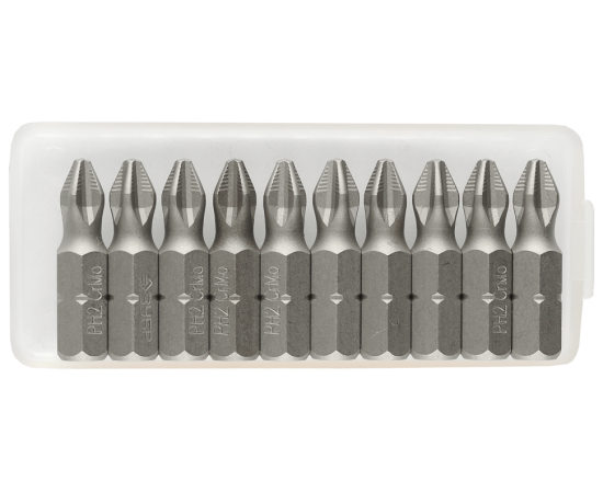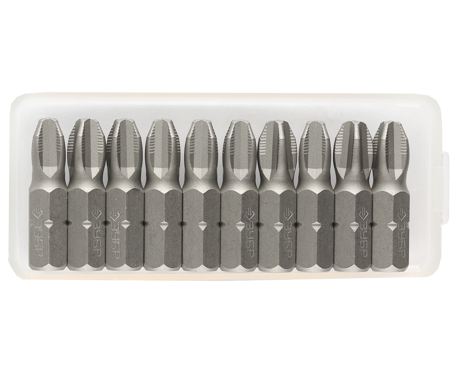 Биты "МАСТЕР" Зубр 26001-3-25-10 являются расходным инструментом для шуруповертов при монтаже/демонтаже крепежа со шлицем PH3. Система насечек "ФИКС" обеспечивает максимально точную посадку шлица в крепеже. Биты изготовлены из кованой хромомолибденовой стали, что обеспечивает им продолжительный срок службы. Также стоит отметить, что шлиц намагничен, что делает рабочий процесс комфортнее. Длина бит составляет 25 мм, тип хвостовика - С 1/4".