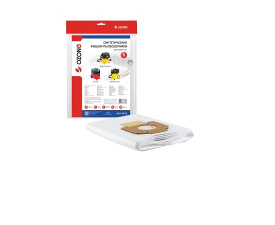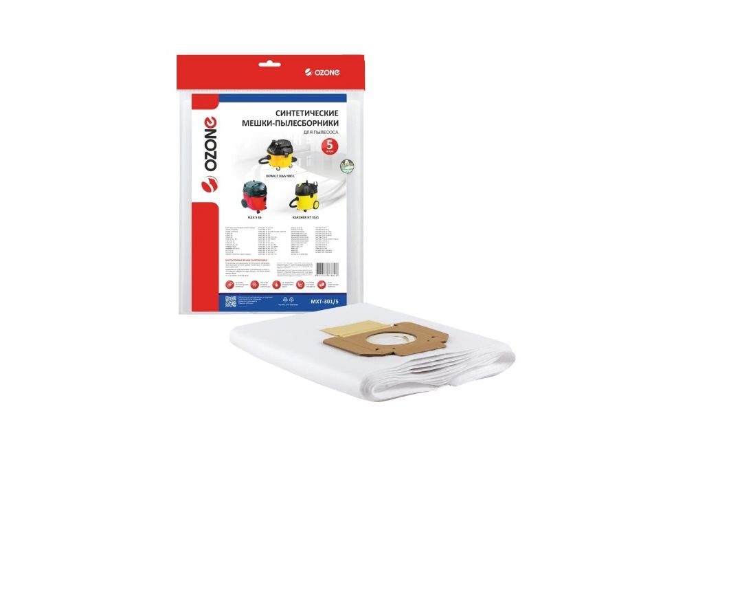 Синтетические одноразовые мешки-пылесборники Ozone MXT-301/5 (комплект из 5 штук) предназначены для профессиональных пылесосов KARCHER, METABO, DEWALT, FLEX, HAMMER, HILTI.