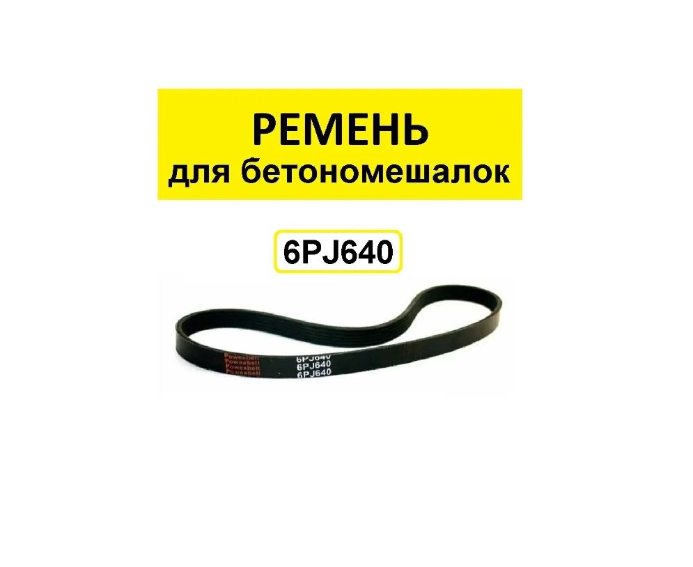 Ремень приводной поликлиновой (ручейковый) 6PJ640 (6PJ-640) к бетоносмесителям (бетономешалкам) Prorab (Прораб) и другой технике. Материал ремня: высокоустойчивый к внешним воздействиям и старению неопрен CR (хлоропреновый каучук), армированный нейлоновым волокном.