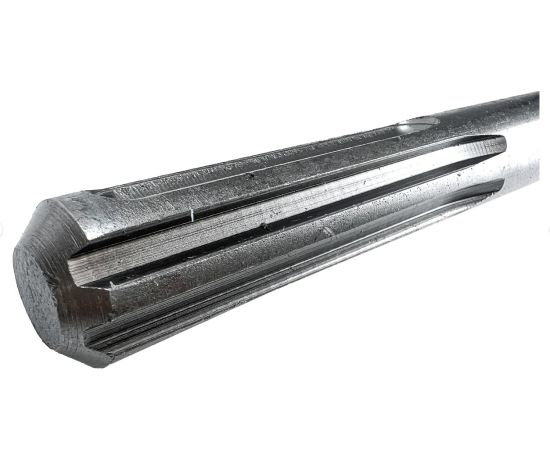 Бур оснащен шнековой спиральной канавкой и вольфрамовым наконечником крестообразной формы. Хвостовик бура отличается более длинными полозьями, он надежно закрепляется в патроне, поэтому изделие может применяться с мощными перфораторами.