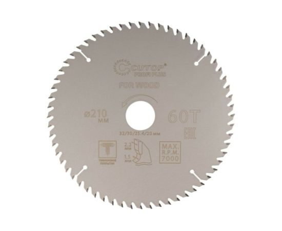Диск пильный с тефлоновым покрытием по дереву Profi plus 210x1.5/2.2x32/30/25.4/20 мм, 60Т CUTOP 75-21060Т используется совместно с циркулярными и торцовочными пилами для продольного и поперечного реза. Предназначен для распила мягких и твердых пород древесины, МДФ, фанеры.