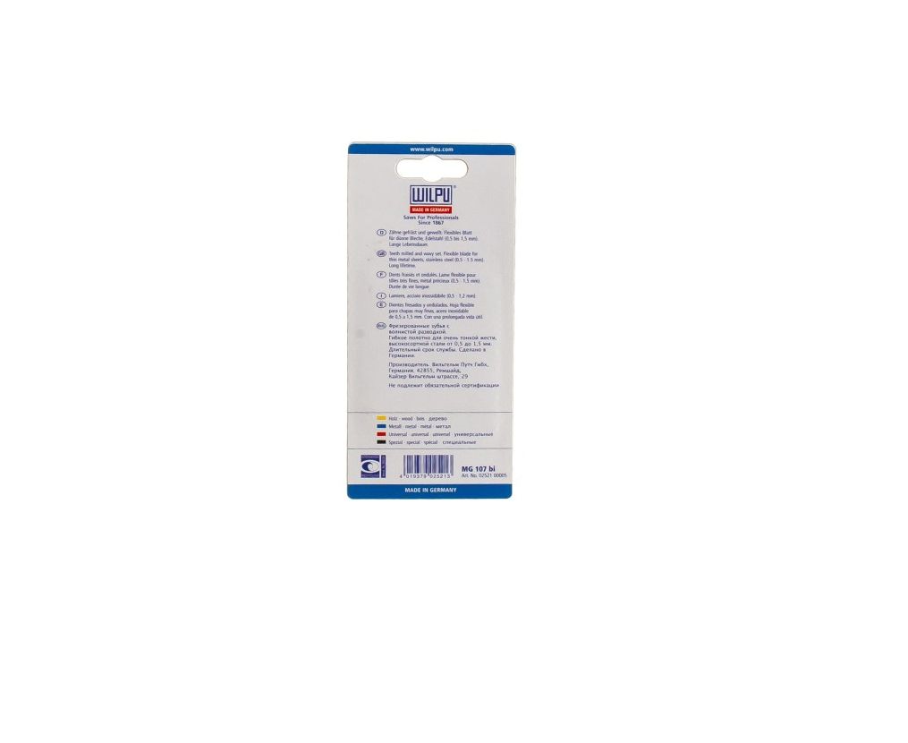 Пилка для лобзика MG 107 bi (артикул 0252100005) от производителя WILPU предназначена для реза тонкой жести и высокосортной стали толщиной от 0,5 до 1,5 мм.