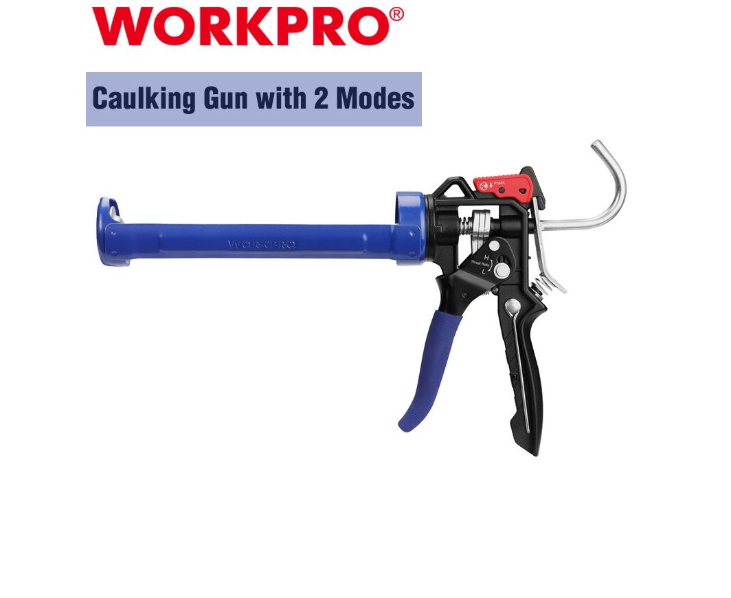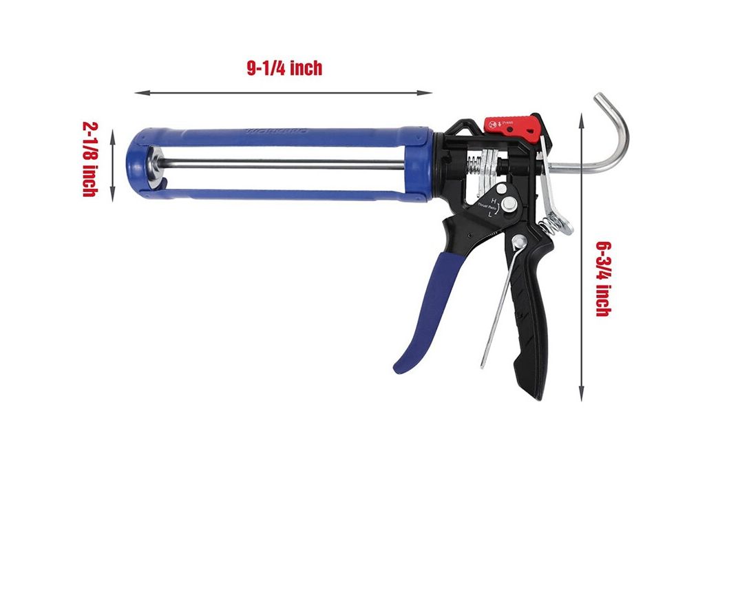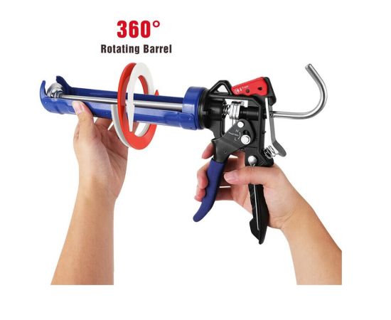 Пистолет с гладким стержнем и регулируемым коэффициентом тяги. Есть настройки для высокой и низкой скорости потока. Оснащён вращающимся барабаном для заделывания трещин в труднодоступных местах.