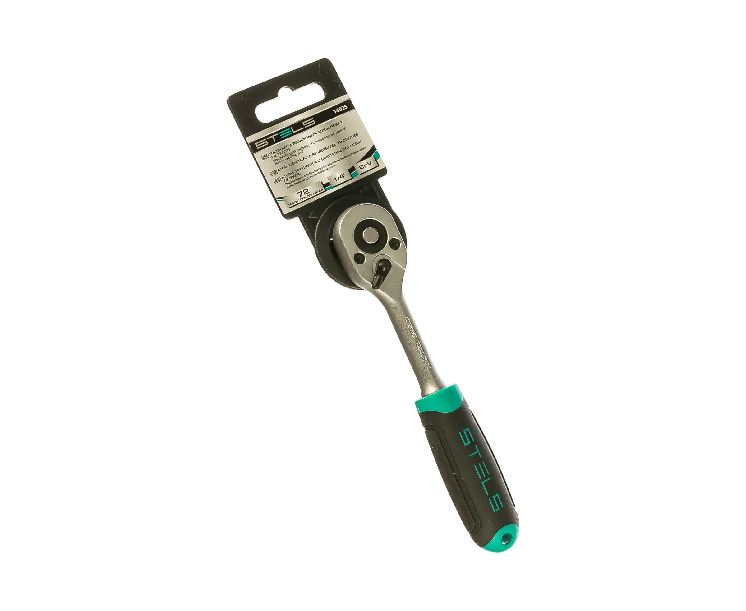 Ключ-трещотка 1/4", 72 зуба, с быстрым сбросом, CrV STELS 14025 облегчает и ускоряет процесс отвинчивания/завинчивания резьбовых соединений. Обеспечивает быструю замену насадок благодаря специальной кнопке. Флажковый механизм позволяет переключать реверс. Отвертка прочна, надежна и долговечна в работе.