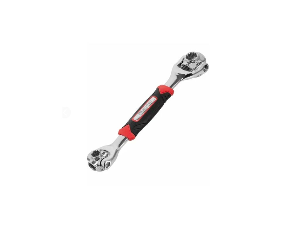 Ключ универсальный 48 в 1 Matrix 14999 из стали CrV имеет 8 размеров головок: 8 мм, 10 мм, 11 мм, 13 мм, 14 мм, 16 мм, 17 мм, 19 мм. Подходит для различных профилей: 6-гранных, 8-гранных, 12-гранных, Square, Torx, Spline. Предназначен для монтажа и демонтажа болтовых соединений. Поворот головки на 360° и угол наклона 45° позволяют работать в труднодоступных местах. Конструкция головки позволяет закручивать и откручивать крепежи на высоких шпильках.
