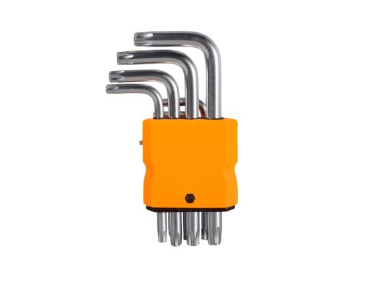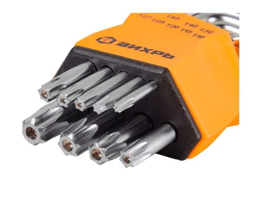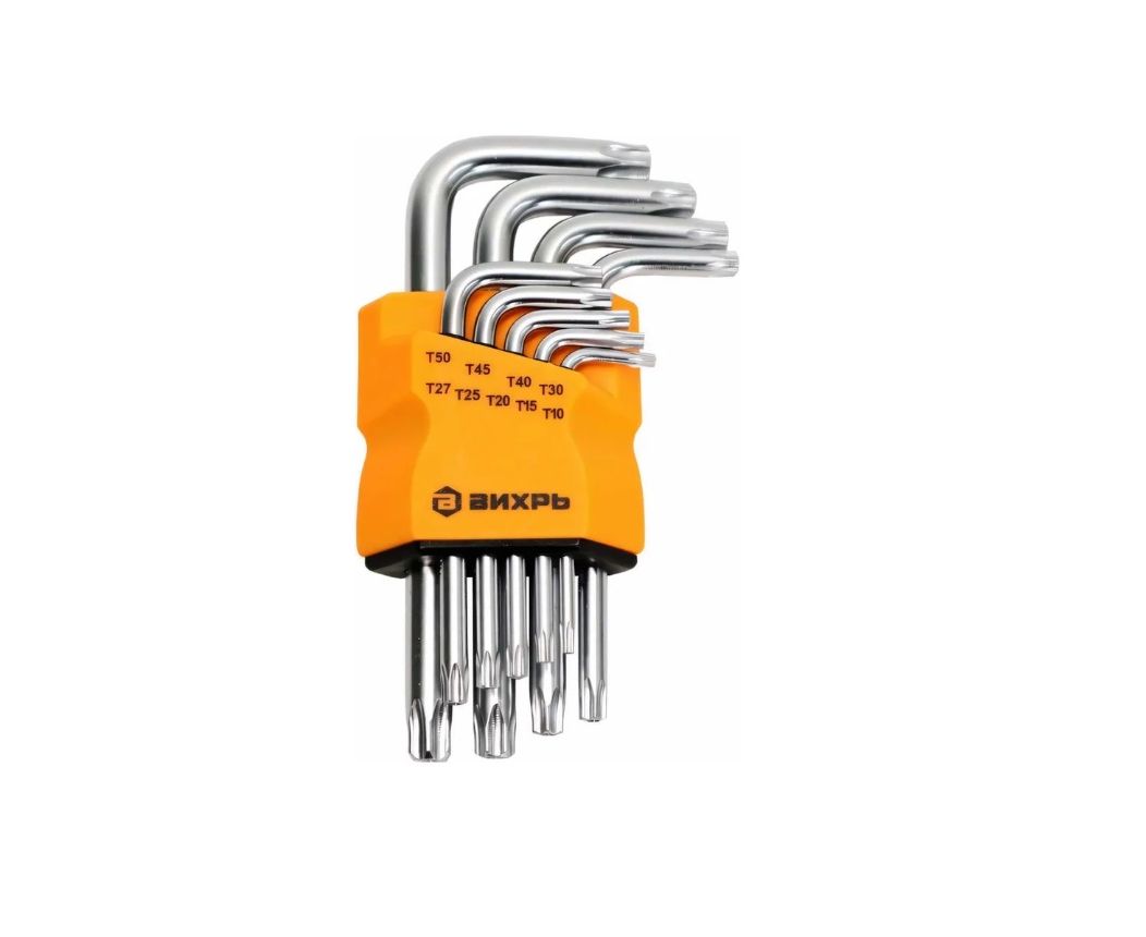 Набор имбусовых ключей Вихрь Torx T10-T50 9 шт. 73/6/5/12 применяется для откручивания и закручивания креплений с цилиндрической головкой и углублением в виде звезды (антивандальной защитой), а также для винтов с внутренним TORX гнездом. Г-образная форма инструмента позволяет работать с большим крутящим моментом. Изготовлены из хромованадиевой стали, устойчивы к большим нагрузкам и коррозии. Пластиковый держатель удобен для хранения. Отлично подойдёт для автомобильного крепежа, а также для специальных винтов на сложных механизмах и устройствах.
